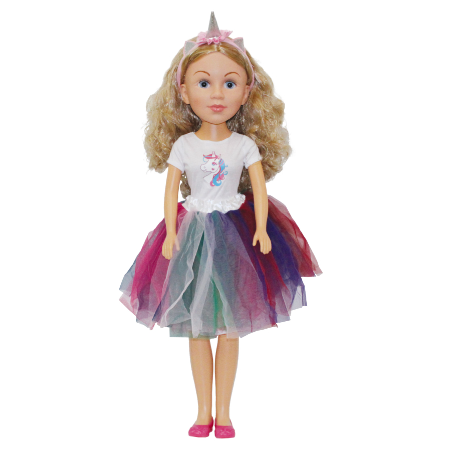 Tato nádherná panenka o velikosti 80 cm okouzlí svým detailním provedením. Má krásné skleněné oči a obléká elegantní svatební šaty s jedinečným designem jednorožce. Perfektní pro sběratele i malé princezny, které milují pohádkovou atmosféru!