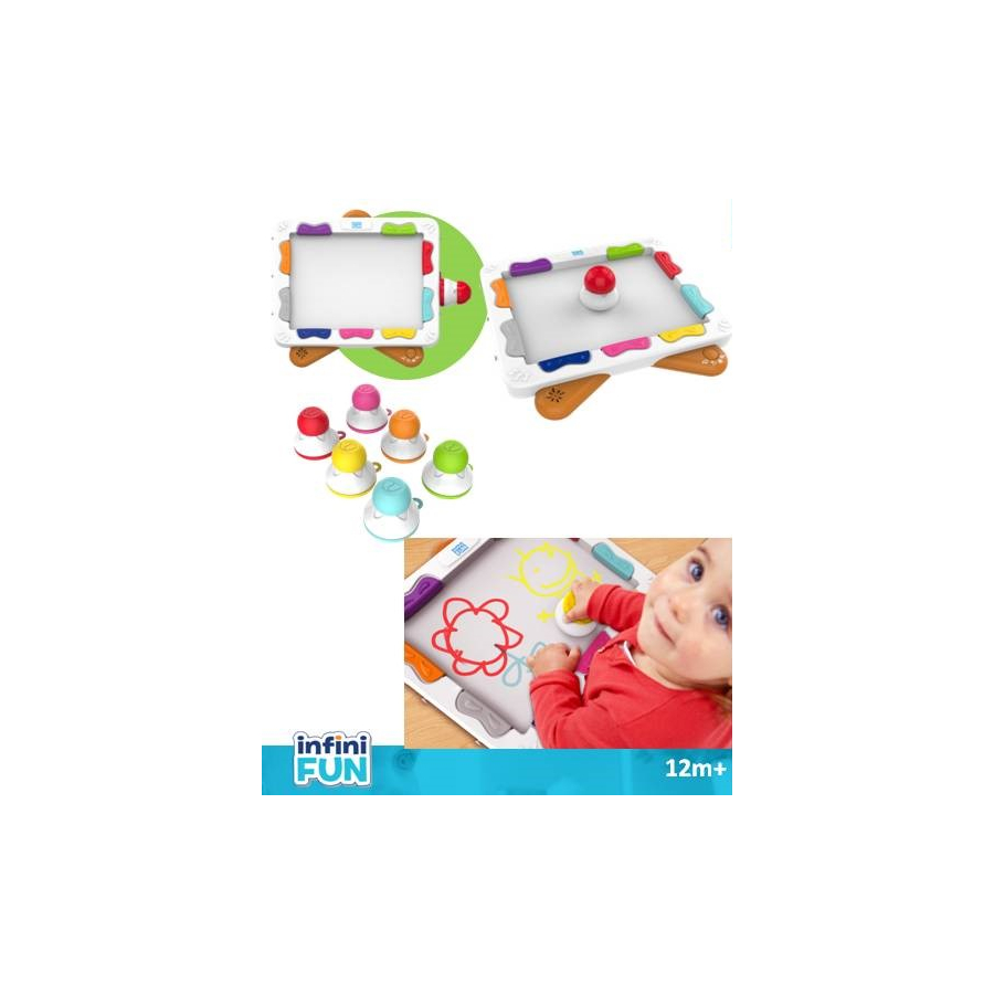 Rozvíjí tvořivost v nejranějším věku! 5 v 1. Hudba, koordinace, barvy, kreativita a emoce. Produkt rozvíjí kreativitu, jemnou motoriku, objevování příčiny a důsledku, zvědavost, vnímání zvuku a hudební dovednosti. Zvukové efekty. 3 hry. Nauč se barvy. Vše je v balení! Nastav papír ve formátu A4 do rámečku, uchop popisovač a vytvoř své první umělecké dílo! 3 listy papíru jsou součástí balení. Pak můžeš použít klasický papír formátu A4.